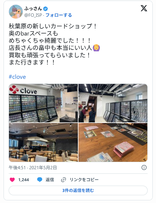 実店舗では実際にカードの販売や買取サービスなども提供されています。「店員が良い人」「買取も頑張ってもらえた」など実際に店舗に足を運んだ人の声もSNS上で見られました。