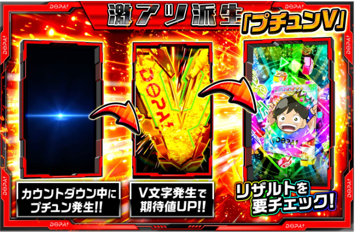 例えば「パック演出」の場合、パックを剥いて出た色によって結果がわかる仕様です。カウントダウン中にプチュン発生は激アツとして、レア商品が当選する可能性が高くなります。