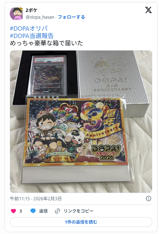 DOPAオリパは、還元率の高さや演出の楽しさ、発送対応のスムーズさなどが話題になっており、実際に口コミでもプラスの声が多く見つかりました。低課金でも遊びやすい仕組みがあるため、オンラインオリパが初めての方でも始めやすいサービスといえます。