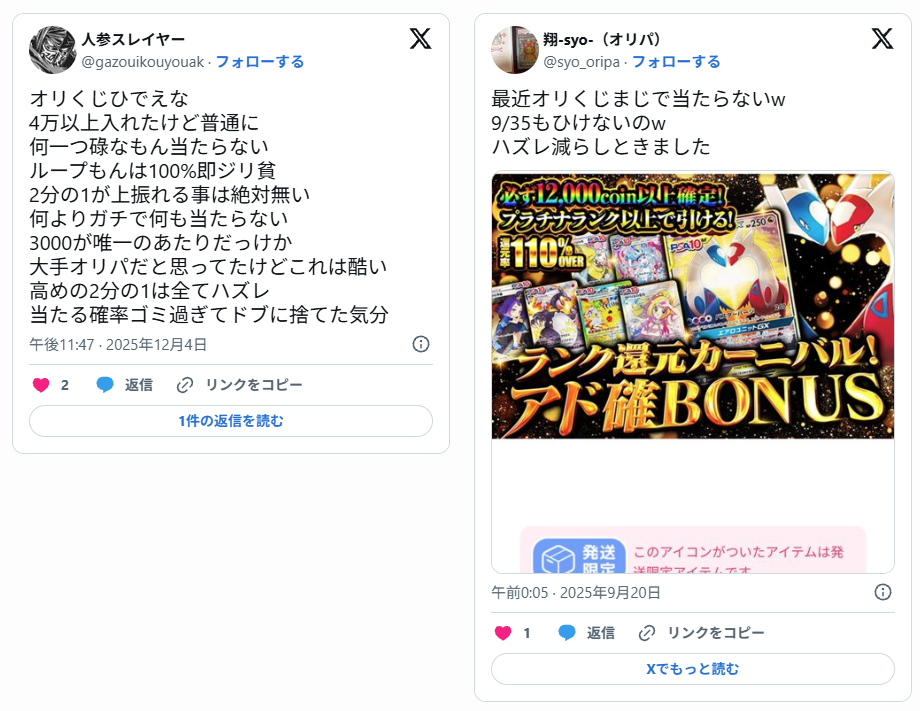 実際にオリくじを利用した方の声を、SNSから集めました。