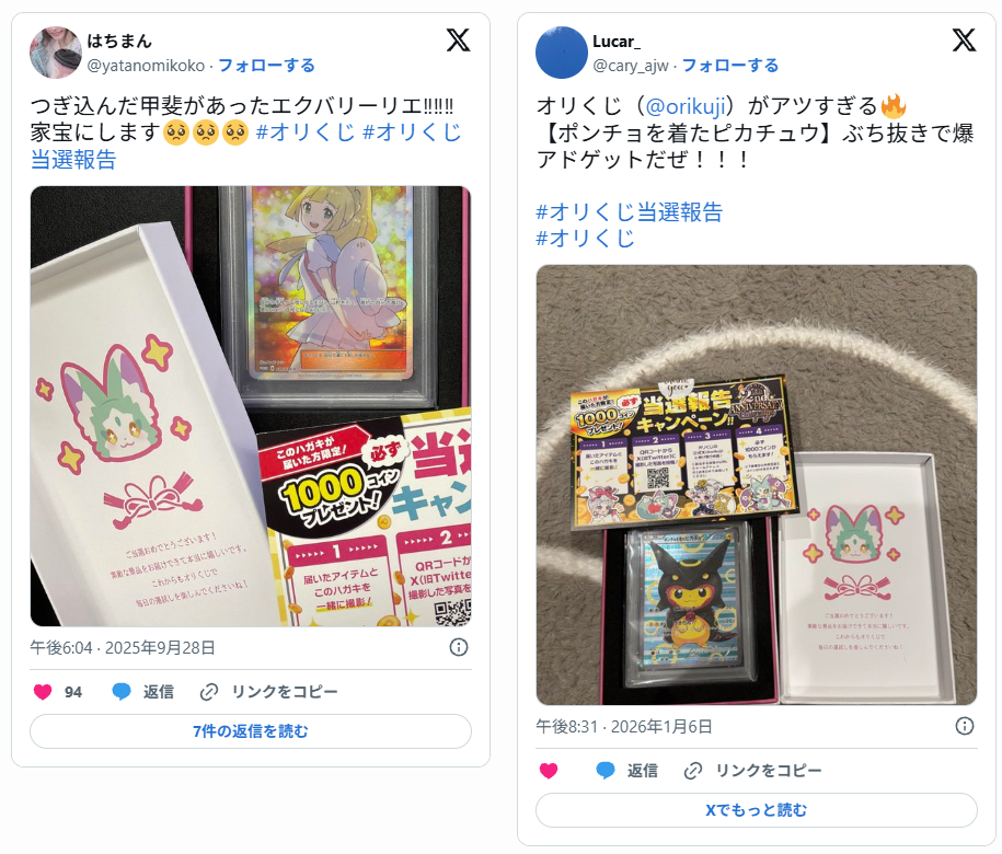 口コミでは「デイリーオリパから入ると安心」「還元率や口数を見て選べば納得感がある」という声が見られます。