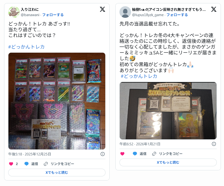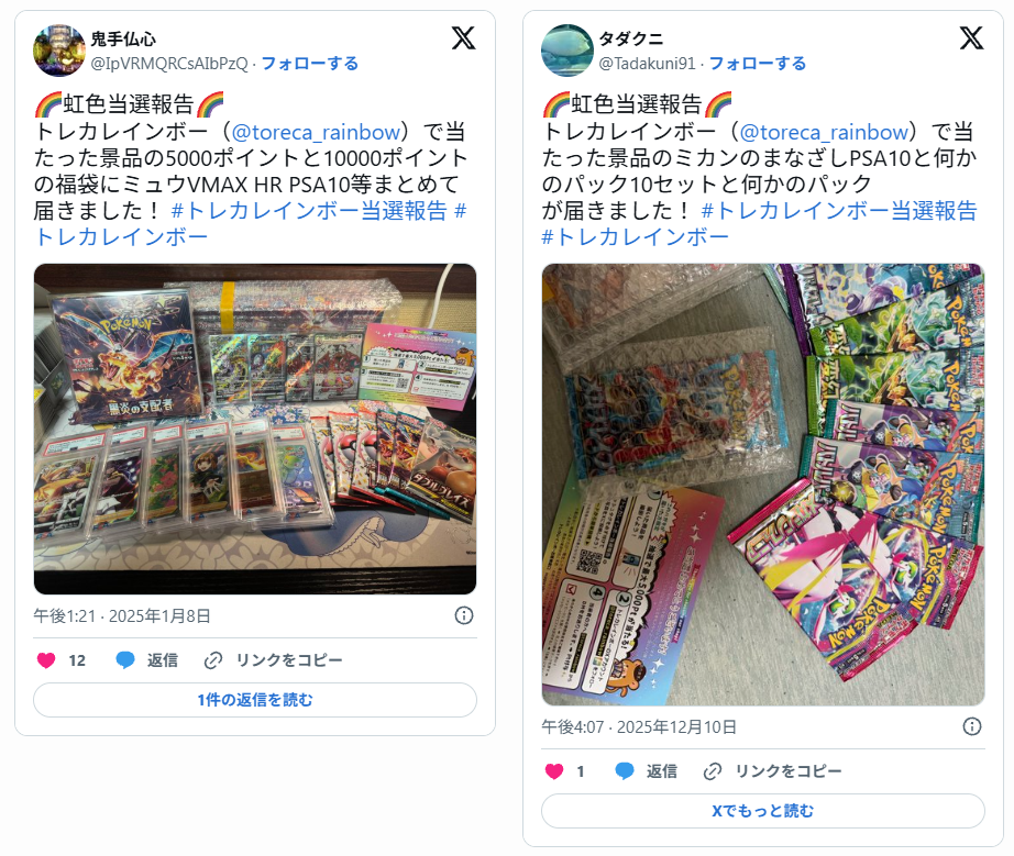 良い口コミでは「当たりを引けた」「演出が楽しい」「発送が早い」「梱包が丁寧」「美品だった」といった声が目立ちます。