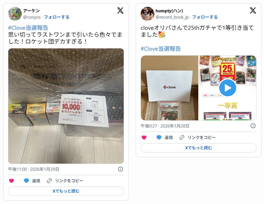 cloveオリパの口コミ・評判