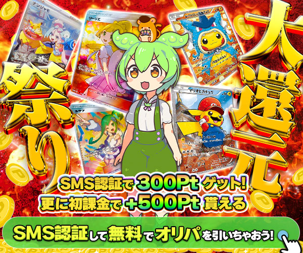 TORIPA(トリパ)は、ポケモンカードに絞ったオンラインオリパサイトで、特典とキャンペーンの厚さが目立つお店です。新規登録後のSMS認証でポイントが付与され、さらに紹介コード入力と組み合わせることで、最初の資金を抑えてスタートしやすいのが強みです。加えて会員ランク制度があり、使い続けるほどチャージ時の還元が上がる仕組みも用意されています。「最初の一歩が重い」と感じがちなオリパを、入り口から軽くしている設計だと言えます。オリパの内容は、アド確定系や還元率100%超など“刺さる人には強く刺さる”ラインも見られます。ただし、人気の高いオリパほど売り切れやすい傾向があり、狙いの口が常に買えるタイプではありません。