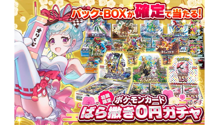 ポケカ新弾ならばらまき0円ガチャで無料で貰えます♪